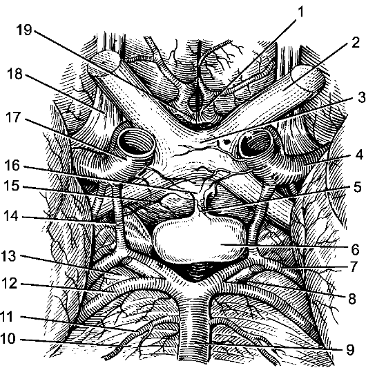 8 – промежуточная и 9 – передняя доля гипофиза;