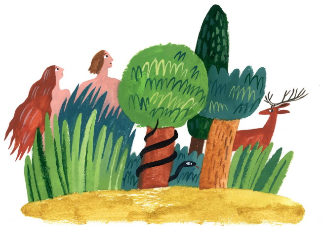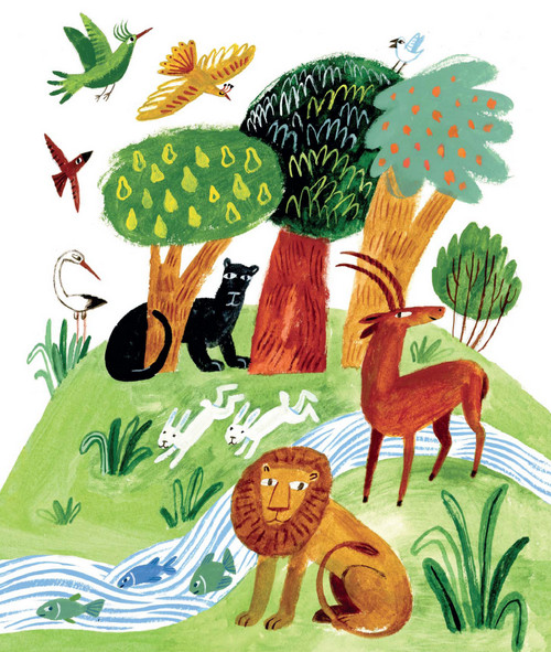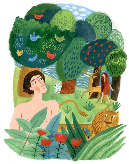 – Вот земля, – сказал Бог людям. – Заботьтесь о ней, берегите её и всех, кто на ней живёт – рыб и птиц, зверей и всех животных. Пусть у вас будут дети, и у ваших детей будут дети – наполняйте землю и будьте её хозяевами. Вы будете есть плоды деревьев и семена, животные – траву, и всем хватит еды и радости.