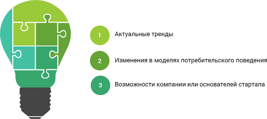 Бизнес-модели и концепции базируются на пересечении трендов, моделей поведения потребителей и возможностей компании или основателей стартапа (см. рис. 1.3). Но для их появления недостаточно взять понравившиеся тренды, поколдовать над ними и получить то, что станет востребовано людьми в зависимости от масштаба бизнеса – во всем мире или в 5-минутной пешей доступности от розничной точки. Появление бизнес-идей, которые, в свою очередь, направлены на разработку решений, возможно только на глубоком анализе трендов и понимании неудовлетворенных потребностей потребителей.
