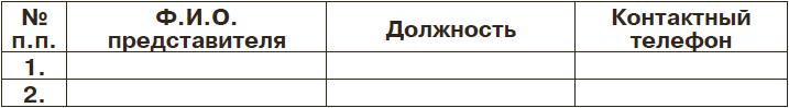 Полное название организации: Адрес, месторасположение организации: Контактный телефон/факс руководителя организации: Ф.И.О., название должности руководителя организации: