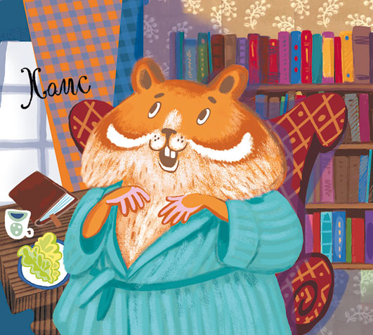 Хомс скромно потупил глаза и попытался лапой незаметно задвинуть упавшие книги под стол.