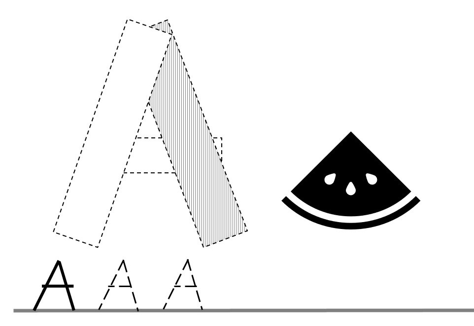 Ответить на вопросы: из скольких элементов состоит буква «А»? Почему рядом с буквой «А» нарисован арбуз (кусочек арбуза).