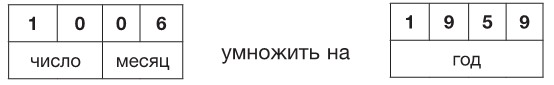 Шаг 1: Число и месяц даты рождения умножаем на год рождения.