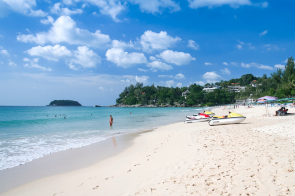 Карон – второй по величине и третий по популярности пляж с пятикилометровой бухтой в форме полумесяца. Белый песок, чистая вода лазурного цвета, ухоженная и благоустроенная набережная. Атмосфера здесь была более спокойной, чем на Кате, несмотря на большое количество в основном русских туристов.