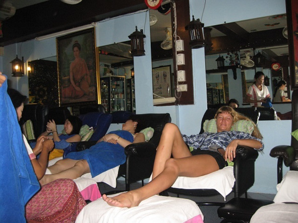 Сначала девушка заказала массаж стоп, и теперь она не лежала и мучилась от бессонницы и шумящей музыки, а лежала и наслаждалась релаксирующим массажем, расслабляющим ее мышцы.