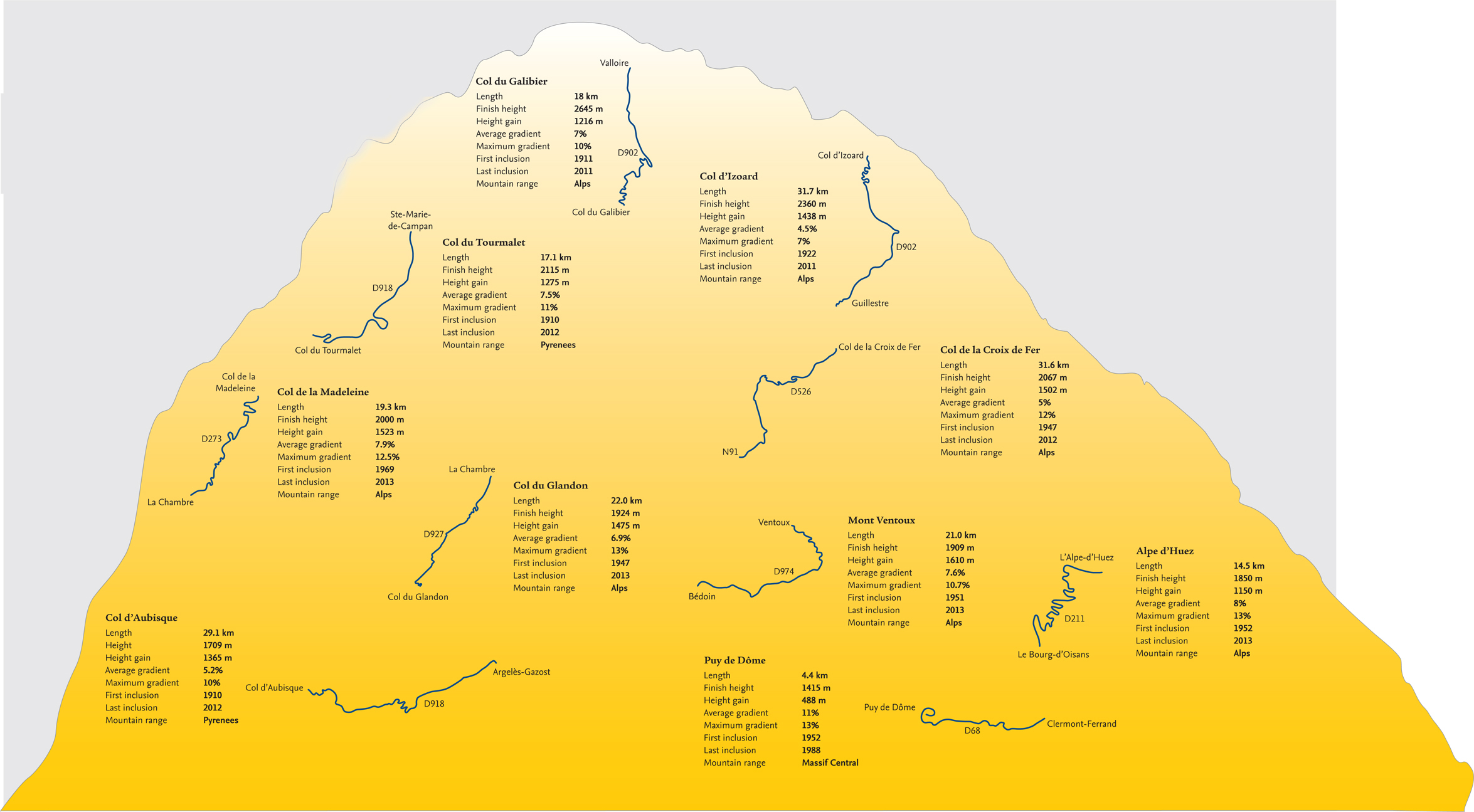 Many battles have been won and lost over the Tour’s mountain stages. Whether it is in the Alps, Pyrenees or the Massif Central, riders need grit, determintaion and extraordinary fitness to overcome the punishing ascents of these now famous climbs.