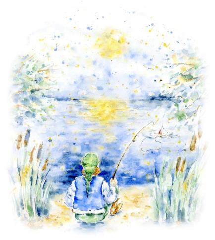 …Его мысли нарушила поклёвка. Поплавок ожил, показывая, что рыба ест приманку с крючка. Олаф не успел вовремя дёрнуть удочку и подсечь рыбу. Он достал голый крючок из воды, нацепил червяка и, закинув удочку в озеро, снова задумался о путешествиях.