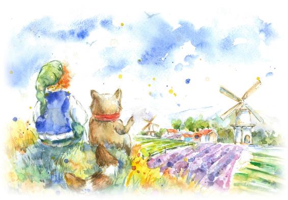– По-моему, но я не уверен… – начал вспоминать енот, – я сидел на пеньке – на пригорке. Вокруг было много полевых цветов, и вдалеке виднелись те самые мельницы.