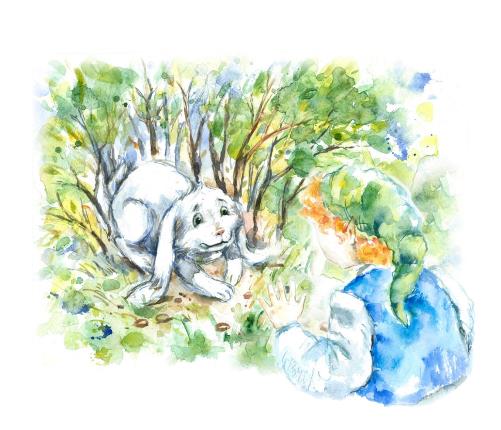 Они ускорили шаг и вдруг заметили странный куст. Он так трясся, что это было видно издалека. Друзья не смогли пройти мимо, не разузнав, что там такое. Приблизившись к кусту, Олаф раздвинул ветки и увидел большого зайца. Он дрожал от страха.