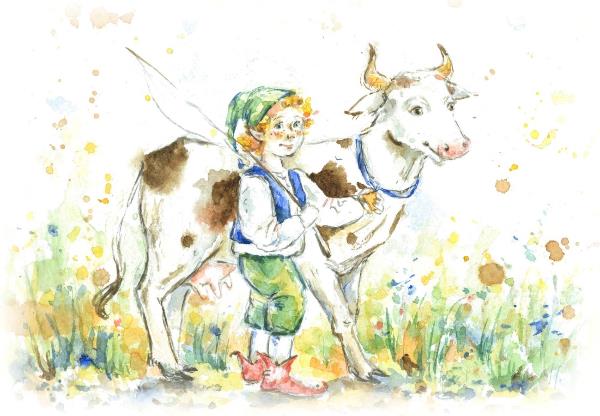 Уходя, он услышал, как обрадовались хозяева возвращению их любимой коровы. Олаф улыбнулся: «Рыбы не наловил, зато сделал доброе дело!» Вернувшись домой, он позавтракал овсяной кашей и лёг отдохнуть…