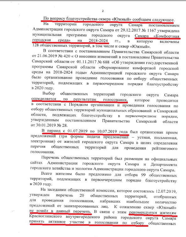 Ответ от Департамента Городского хозяйства и экологии г. Самары от 16.01.2020