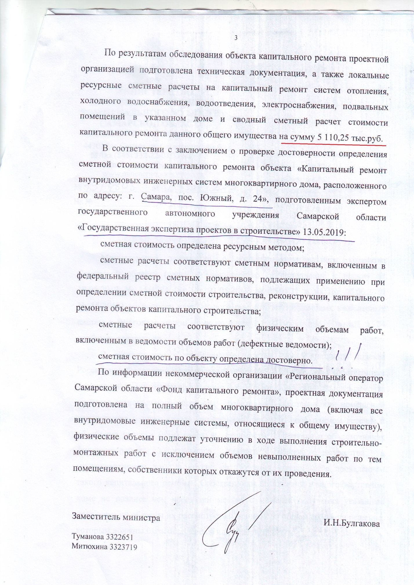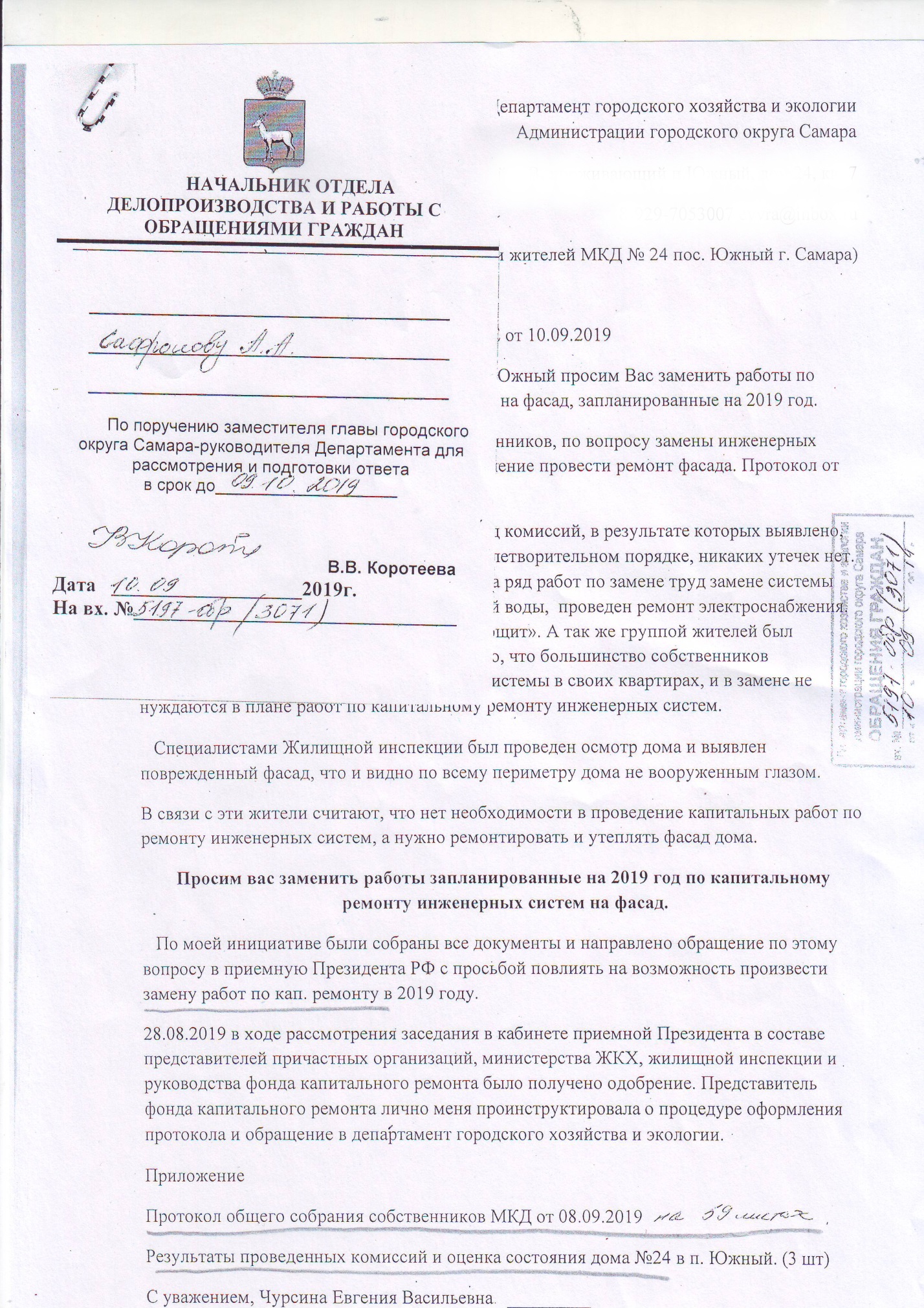 Ответ из Департамента Городского хозяйства и экологии г. Самара от 09.09.2019 № 1-03/2/6239