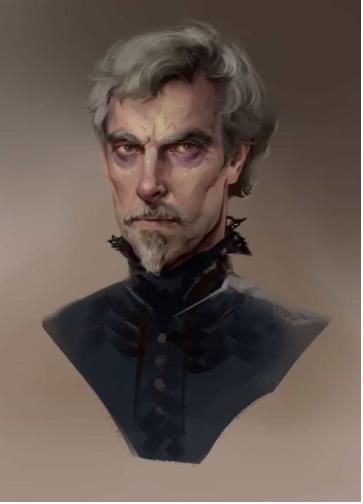 В углах помещения молчаливыми тенями застыли охранники. У дальней стены в глубоком кресле восседал мужчина[9] весьма зрелых лет, положив руку на походную трость. Ещё не старик, но до этой отметки явно оставалось всего несколько лет. Седой, как лунь. Аккуратные усы и эспаньолка. Глухой тёмный камзол с кружевным воротником до горла.