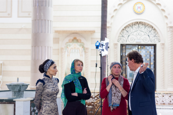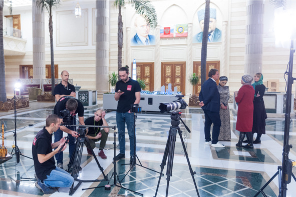 Я легко согласился, хотя и был несколько озадачен: Рамзан Ахматович, как нам всем на съемочной площадке показалось (кстати, наши девушки, включая гримера и продюсера были в платках + платьях «в пол»), совершенно без запинки и со своей фирменной улыбкой ответил на шуточный вопрос про то, что дочь, мол, «отжала» у матери бизнес.