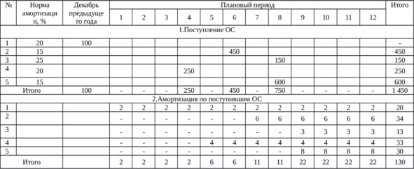 В целом за весь плановый год амортизация по поступившим основным средствам с учетом декабря предыдущего периода составит 130 тыс.руб.