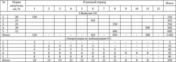В шестой строке представлен информация об амортизации по выбывающим основным средствам. Информация взята из таблицы 3.2.