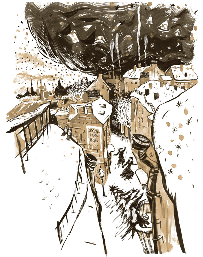 Шум сталкивающихся снежинок становился чуть громче и отчётливее, он всё больше напоминал музыку. Словно огромный оркестр тихо-тихо играл на колокольчиках какую-то необычную мелодию.