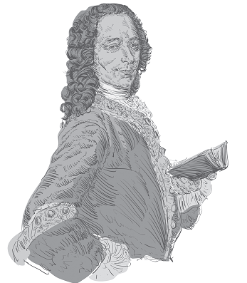 Франсуа-Мари Аруэ, будущий Вольтер, родился в образованной и зажиточной буржуазной семье, достигшей этого положения медленно и постепенно усилиями нескольких поколений. В XVI веке предки Аруэ были еще простыми кожевниками в Пуату; в первой половине XVII века дед Вольтера оказался уже крупным торговцем сукнами в Париже. Он дал сыну солидное образование и в 1666 году ликвидировал свои дела. Из рядов промышленной и торговой буржуазии семья Аруэ перешла в ряды служащей буржуазии, чиновников и легистов, близко соприкасавшейся с дворянством. Сын торговца сукнами сделался нотариусом, а впоследствии приобрел должность в государственном казначействе. Он женился на дворянке, не отличавшейся скромными домашними добродетелями старой буржуазии, но сумевшей сделать дом нотариуса приятным для его знатных клиентов. Он вел дело Сен-Симонов, Сюлли, Комартэнов и пользовался их благосклонностью. Герцог Ришелье крестил его старшего сына. Меньшему, будущему писателю, родившемуся в ноябре 1694 года, судьба послала в крестные отцы аббата Шатонёфа, оказавшего значительное влияние на его воспитание.