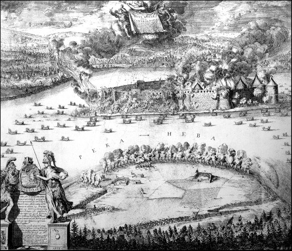 Взятие Нотебурга в 1702 г. С гравюры А. Шхонебена. 1703 г.