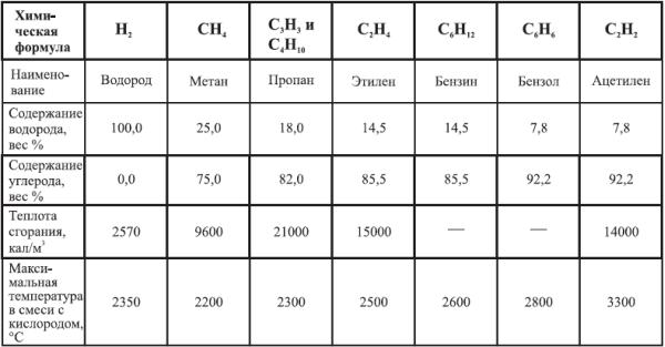 Характеристики газов, применяемых для газовой сварки