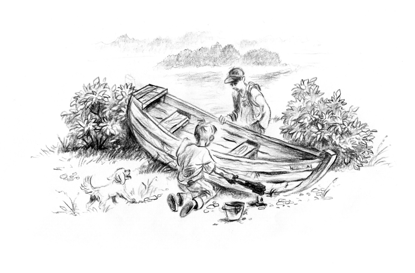 Через несколько минут Паша и Витька услышали призывный лай своего младшего друга. По тону была ясно, что Чих именно звал, а не просто тявкал на встреченную лягуху. Пришлось идти. Вернее, продираться сквозь лопух и старую дикую малину, которая цеплялась за штаны и рубахи и не пускала от себя. Но то, что они обнаружили, мгновенно заставило забыть о неприятностях с колючками. Доблестный Чих нашёл не что-нибудь, а самые настоящие вёсла! С манжетами под уключины, с отёсанными лопастями и гладко шлифованными рукоятками. Находка всем находкам.