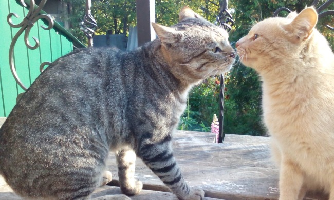 Не знаю как, но во дворе у нас,Вдруг появились два кота.Хитрющий рыжий, сущий барс,Другой весь серый с носа до хвоста.Неугомонный рыжий, где то там!Все лезет на чердак, в окно и дверь.Несет мышей, он наловил их сам,И в доме выпускает их! Поверь!А серый старше, шрамы на боку,На рыжего глядит как на дитя.Он много видел на своем веку,И даже мышек ловит так, шутя.Как вышло, потеряли они домРучные оба, корм и ласку знают.Кто их кормил, избавился потом?Молчат коты, они людей прощают.Их любят все соседи и мои друзья,И кормят все, и гладят и ласкаютИм без любви совсем прожить нельзяЗа ней пришли, они все понимают.Живут коты и делят с нами кров,Два шерстяных и добрых чуда.Рыжий непоседа, он на все готов.Спокойный серый…Я вас не забуду.