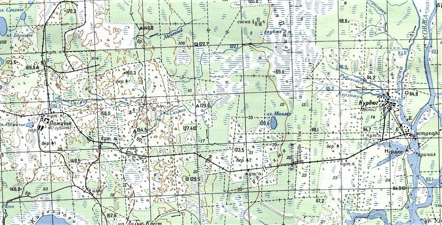 Вновь поселок Кỳрдюг появился в конце сороковых годов в трех километрах по речке Кỳрдюжка после того, как здесь открыли учреждение ОЕ-256/8 или исправительно-трудовую колонию строгого режима (ИТК-8), где осужденные занимались заготовкой и сплавом древесины. Вначале вырубка древесины производилась вблизи поселка, но со временем стала удаляться все дальше и дальше. Для ее доставки к месту сплава строилась, постепенно прирастая километрами, узкоколейная железная дорога, по которой лес перевозили на специальных железнодорожных платформах с помощью мотовозов*. В 1959 году для улучшения качества работ в 17-ти километрах на запад от поселка Кỳрдюг открыли филиал Кỳрдюжской колонии – ИТК-7. Образовался поселок, расположенный на живописном лесном озере Пажичье, который назвали Глубинка или Пажичье. Соединяла эти два поселка узкоколейная железная дорога.