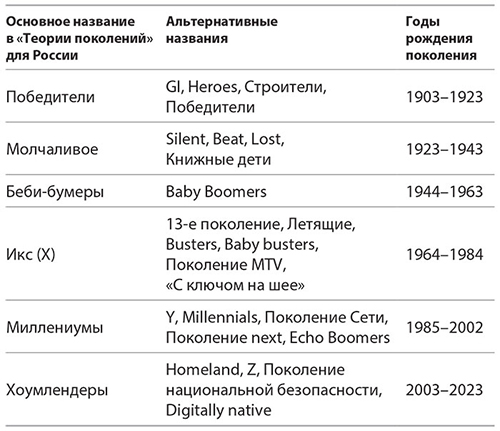 • авторов Теории поколений Нила Хау и Вильяма Штрауса за огромный труд, смелость и удовольствие познания;