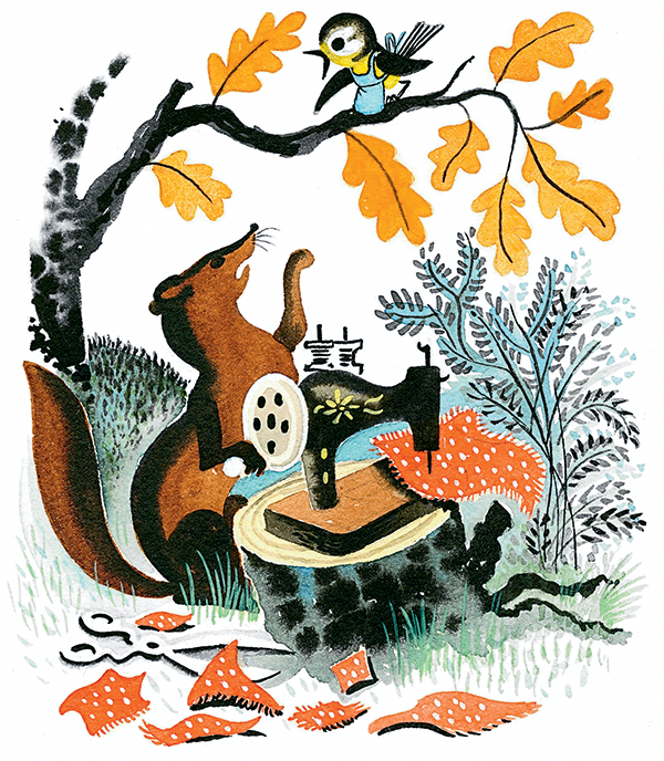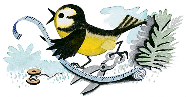 Стала терпеливая Синица из холстины фартук кроить. Тут прикинет, там смекнёт, сюда подвинет, туда подвернёт. Всё она сообразила. Всё высчитала, всё вычертила, потом за ножницы взялась. Хороший фартук получился. Ни одного лоскутка не пропало даром.