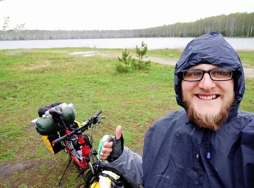 Под моросящим дождём я сложил палатку, свернул мокрый спальник и быстро упаковал все сырые вещи по сумкам. Замотал пищевой пленкой ноги до колен, создавая имитацию водонепроницаемых гамаш. Поехал по грязной лесной дороге в сторону трассы. Холодало…