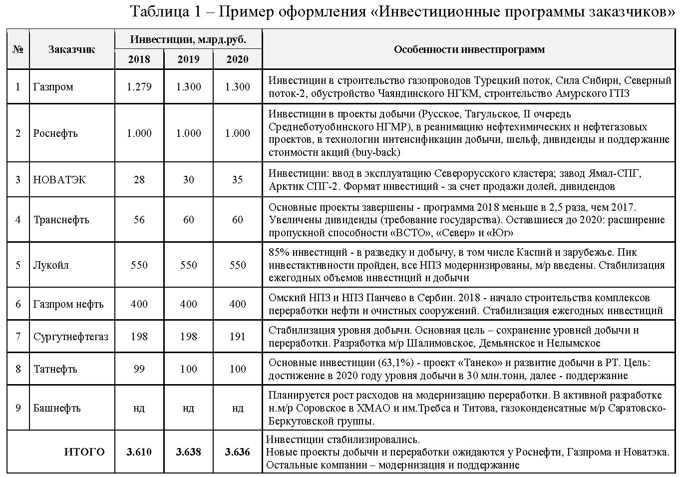Динамика объемов инвестиционных программ основных заказчиков всегда максимально чувствительна к динамике рынков, и очень хорошо ее характеризует (прошедшие периоды) и определяет ее (будущие периоды). Из практики, сопоставление динамики инвестиций заказчиков с динамикой объемов их закупок у одного из поставщиков, показало наиболее максимальные коэффициенты корреляции, в сравнении со всеми другими факторами рынка (цена на нефть, ставка ЦБ, курсы валют и пр.). И это логично, суммарно инвест-программы заказчиков и определяют емкость соответствующих рынков. Влияние по другим инжиниринговым компаниям может быть выражено слабее, но оно точно есть, и мы должны его учитывать. По возможности надо выявить проекты заказчиков, планируемые к реализации в планируемом периоде, их генподрядчиков, НИПИ, особенности требований к участникам (табл.1). Именно на них потом необходимо будет фокусировать Вашу коммерческую активность – поиск лиц, принимающих решения, презентации, неформальные встречи, обеспечение преимущества своей продукции в сравнении с продукцией конкурентов, помощь разработчикам генподрядчика по бюджету и ТЗ и пр. То есть обеспечить максимальное информационное сопровождение перспективных заказов – от принятия решения до полной реализации. Такой формат коммерческой деятельности сегодня наиболее эффективен и распространен.