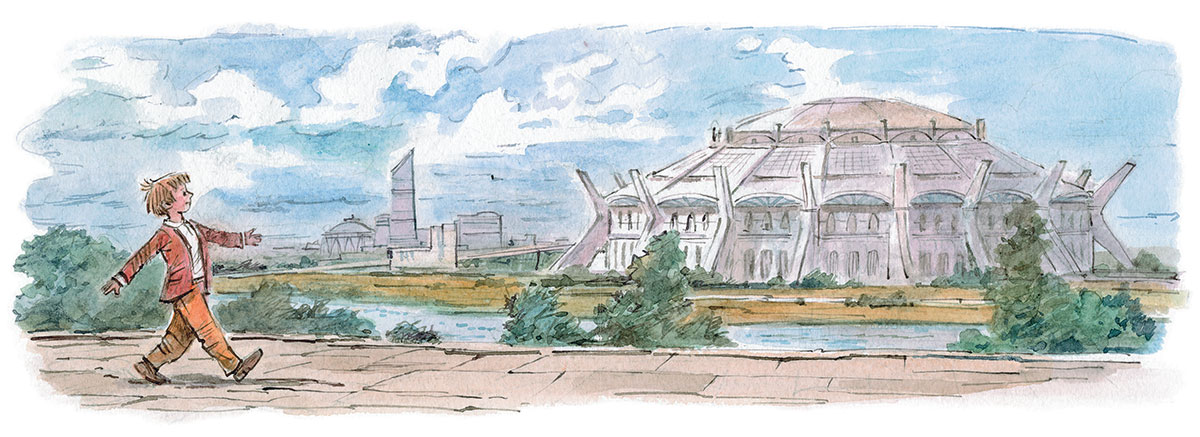 Внизу, за рекой, видна чаша стадиона. Серёжка смотрит на неё, но видит не стадион, а каменные стены римского Колизея. Сейчас он не семиклассник школы кибернетиков, он – отважный гладиатор; на нём не штаны и куртка, а железные доспехи. Рычат в подземелье дикие звери. Он должен схватиться с тиграми и львами и поразить их своим мечом, чтобы остаться живым. И он чувствует тоску, как тот гладиатор, который каждый день выходил на арену рисковать жизнью…