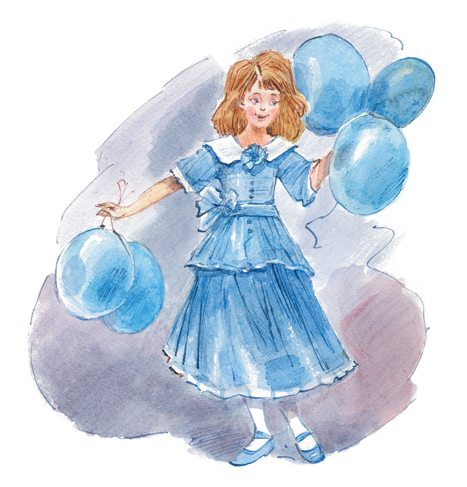 А на маленькой сцене идёт концерт. Стоит на самом краю тонкая девочка, вся в голубом, с ног до головы, даже шары в руке голубые, и поёт песню:
