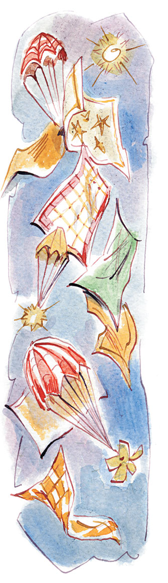 Серёжка смотрит с недоумением на сигарету в руке друга, но в это время из дыма в публику посыпались разноцветные платки. Красные, голубые, жёлтые, зелёные, белые… Все вскочили, захлопали, засмеялись, стали ловить платки. А Электроник пускал и пускал круглые белые облачка. Они, как маленькие ядра, летели во все ряды, сея дождь весёлых парашютов, которые брались неизвестно откуда.