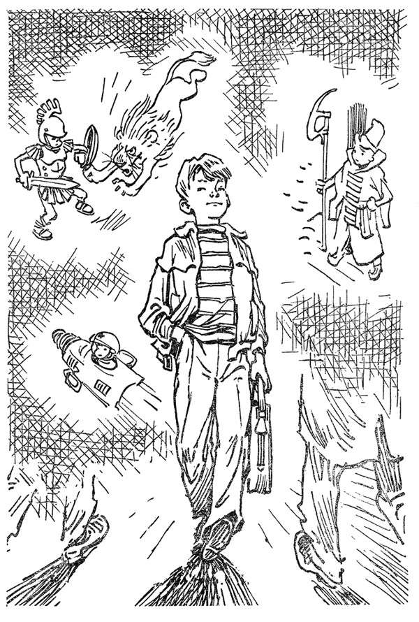 А придёт минута спокойной задумчивости, и он увидит над двором стремительные облака-птицы, облака-планёры, облака-ракеты, которые несёт с собой ветер в голубом небе. И прямо из-за крыши вылетит на него большая серебристая машина – пассажирский реактивный самолёт, прикроет на мгновение крыльями весь двор и так же внезапно исчезнет, только гром прогремит по крышам.