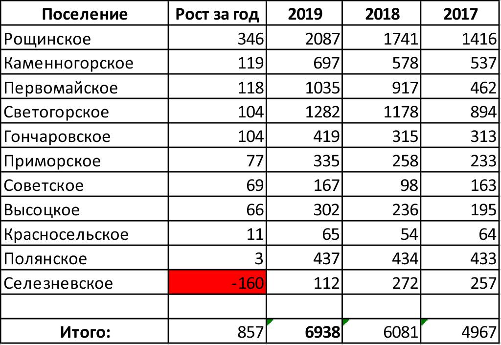 Вот аналитика групп по Выборгскому району без райцентра (без города Выборга):