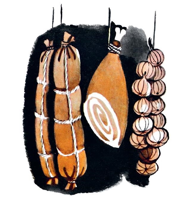 – Один страшный ходит по двору вот этак: ноги у него чёрные, хохол красный, глаза навыкате, а нос крючком. Когда я мимо шла, он открыл пасть, ногу поднял и стал кричать так громко, что я от страха не знала куда уйти.