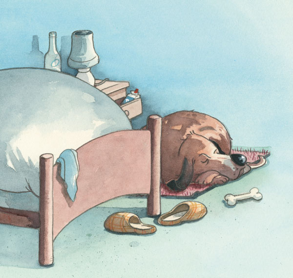 Вислоух ходил по квартире от своего пушистого коврика до окна и обратно. У пса уже слипались глаза, так он устал за целый день! Никель и Хорн в то время не издавали ни звука: питомцы лишь делали вид, будто крепко спят. И в сонной квартире слышалось лишь топанье Вислоуха, тиканье часов и похрапывание старого сыщика.
