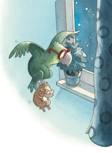 – Что же ты не попросила меня помочь? – тихонько отругал её Хорн, спорхнул вниз, схватил морскую свинку лапками за загривок и отнёс на подоконник. Теперь они стали вместе смотреть в окно.
