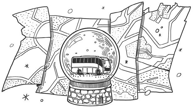 Оба автобуса выехали со стоянки и встали в нескольких метрах от входа в мини-маркет, а снег валил всё гуще и гуще. Учителя сказали, что сейчас мы рассядемся по своим местам, но сначала они сделают перекличку.