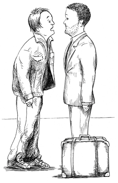 I’m squinting up at the departures board looking for the London train. I’m normally OK without the glasses but some wee guys by the bank machine are nodding over at me. Eventually one of them walks over, stands about 18 inches away from me and blares, ‘Aye, it fucking is him an all,’ as dispassionately as if he’s noting that it’s raining.