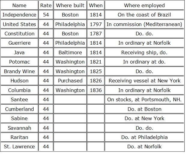 Vessels of War of the United States Navy, September 1837.