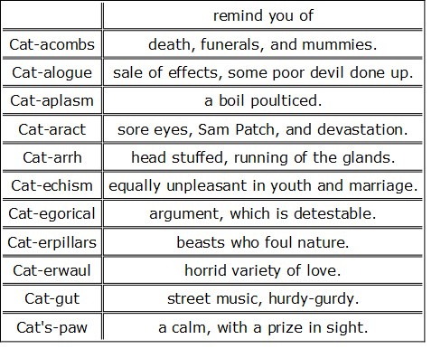 As for a cat itself, I cannot say too much against it; and it is singular, that the other meanings of the single word are equally disagreeable; as to cat the anchor, is a sign of going to sea, and the cat at the gangway is the worst of all.