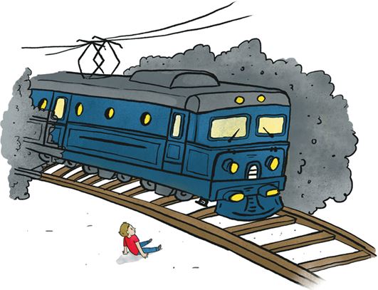 В пять лет я увидел женщину с папкой у железной дороги. Я уже собрался перейти через пути, когда она подскочила с другой стороны и что-то закричала. Я остановился как вкопанный. В следующую секунду появился поезд, он с ревом промчался мимо, так близко, что я кубарем отлетел в сторону. Когда поезд прошел, ее уже не было.