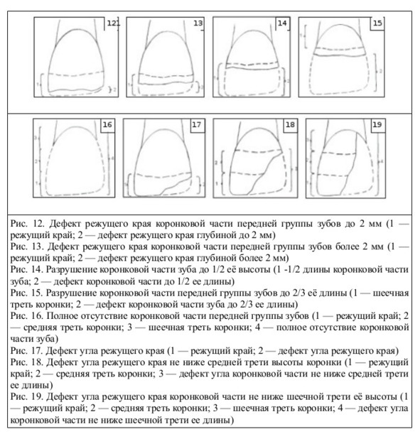 I класс – дефект режущего края коронковой части передней группы зубов до 2 мм (рис. 12);