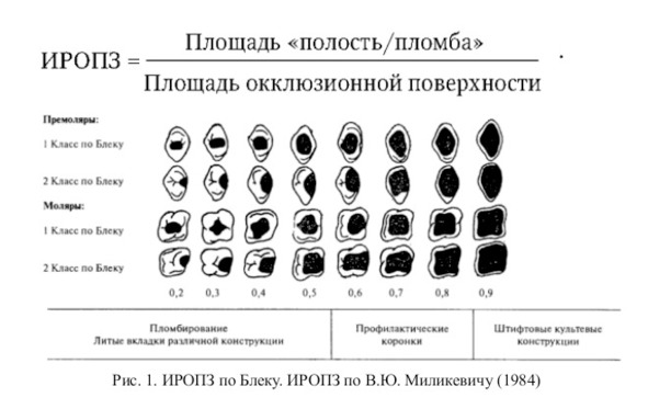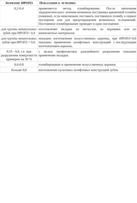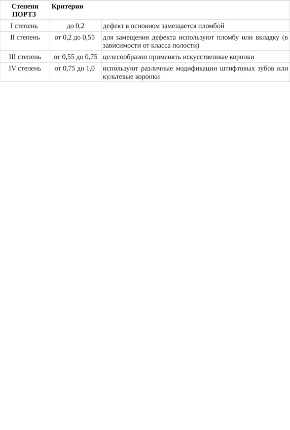 Янишен И. В. (1997) предложил для обоснования выбора замещения твердых тканей зубов использовать показатель объемного разрушения тканей зуба (ПОРТЗ).