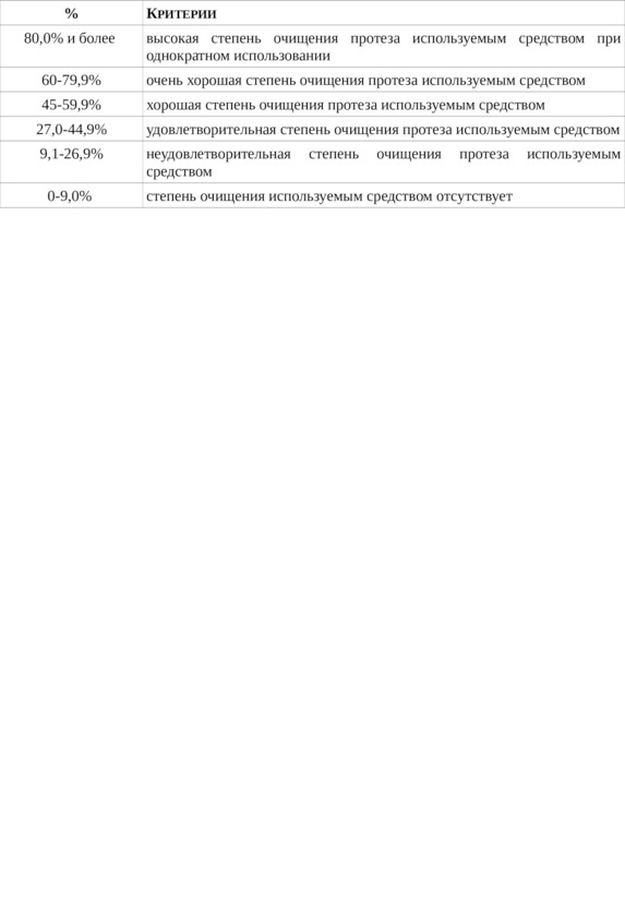 Оценка показателей редукции степени загрязнения протеза: