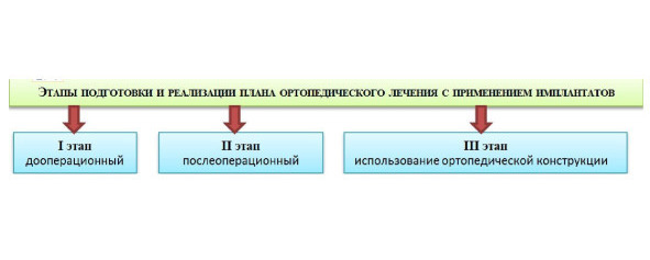 Рис. 5. Этапы подготовки и реализации плана ортопедического лечения с применением имплантатов.