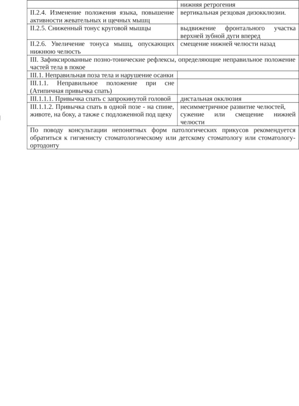 8.7. Памятка-таблица для родителей о вредных привычках и патологических прикусах
