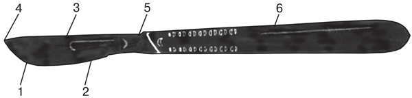 Рис. 2. Особенности конструкции хирургического ножа (объяснение в тексте) (по: Medicon Instruments, 1986 [7]).